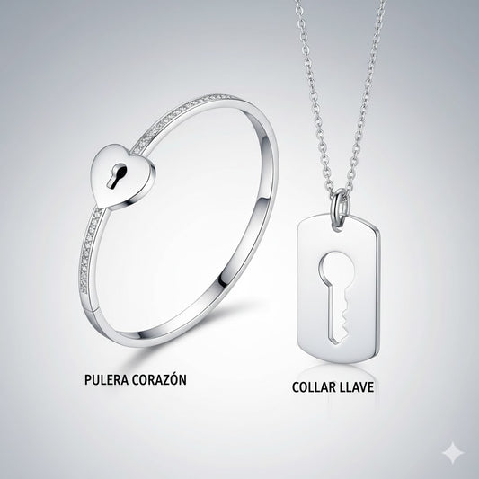 PULSERA CORAZÓN Y COLLAR LLAVE (PAREJAS) | ENVÍO GRATIS